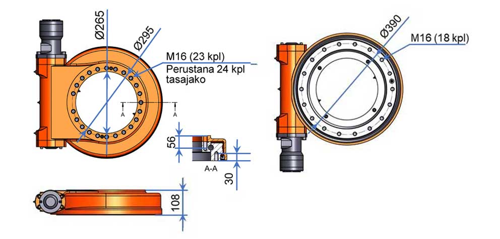 The slew drive provides unlimited and stepless rotational movement without slipping while carrying heavy loads. A well-controlled and stable rotation makes work safer and more efficient.